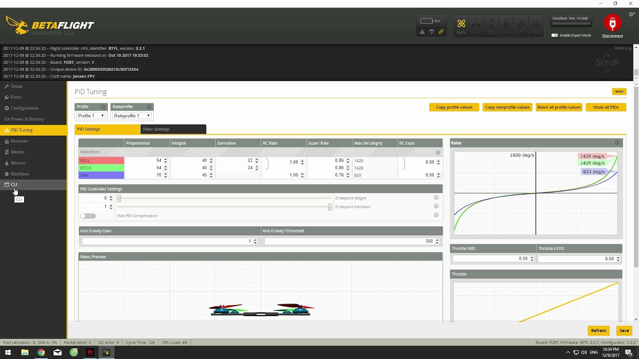 But then the motors didnt work, so i looked it up Google. There someone said that i needed to put a code in the “cli” so i did that…
