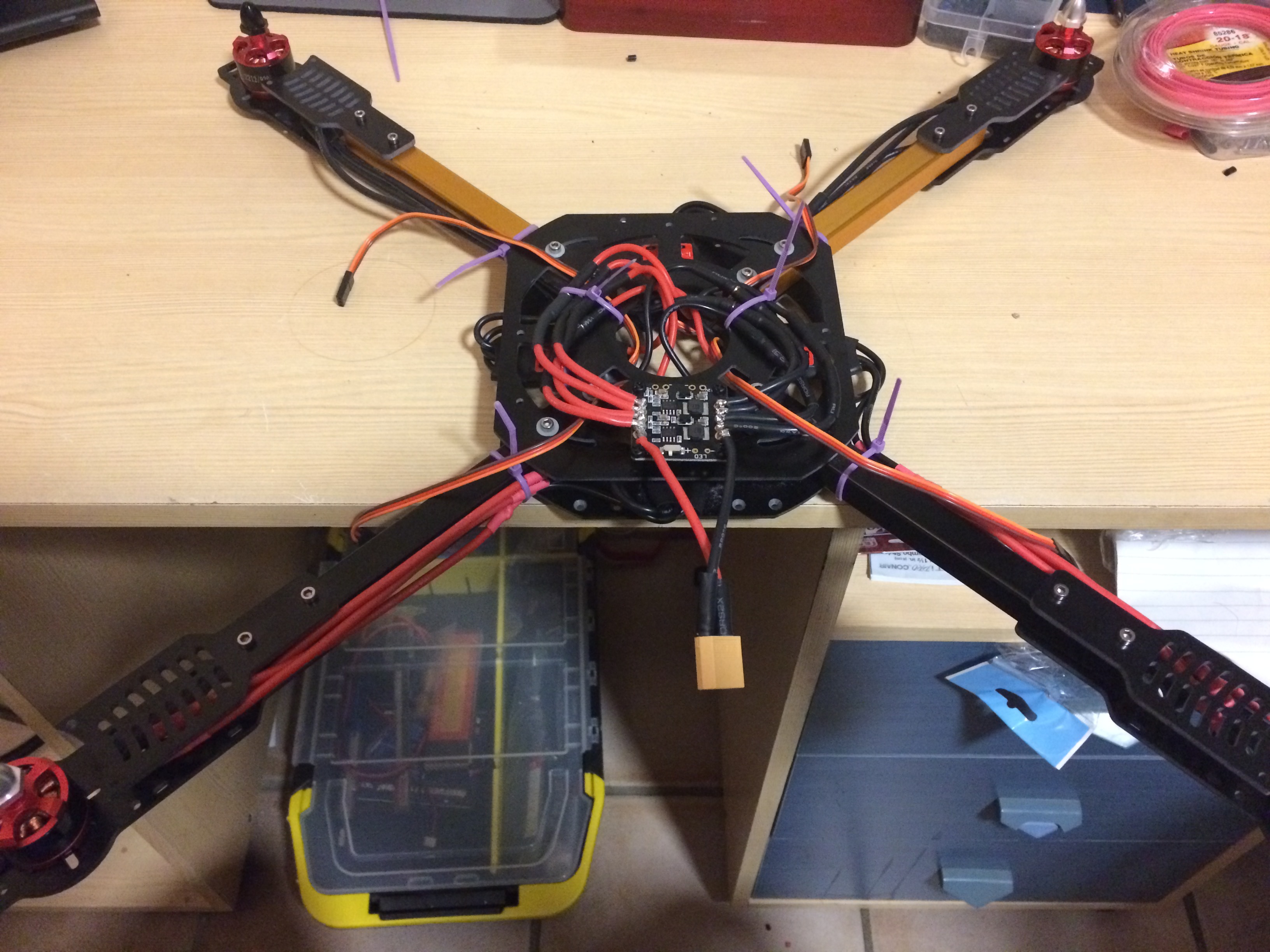 So here I am! Crash course quad building! This is a 550 frame, cc3d fc will go on, flysky fa-i6s with fs-x6b, 30a esc’s, 920 kv motors can’t wait to finish “Project UNO” in all its unorganised glory! Learned a lot so far!