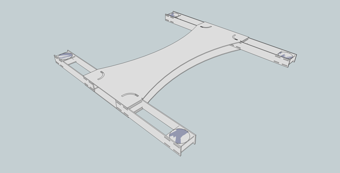 Currently the 3D mockup is being designed in SketcUP so I can see if there seem to be any fundemental issues and to start with the vague design shapes. The motors are 450mm on center from each other (same as my F450 - had to start somewhere