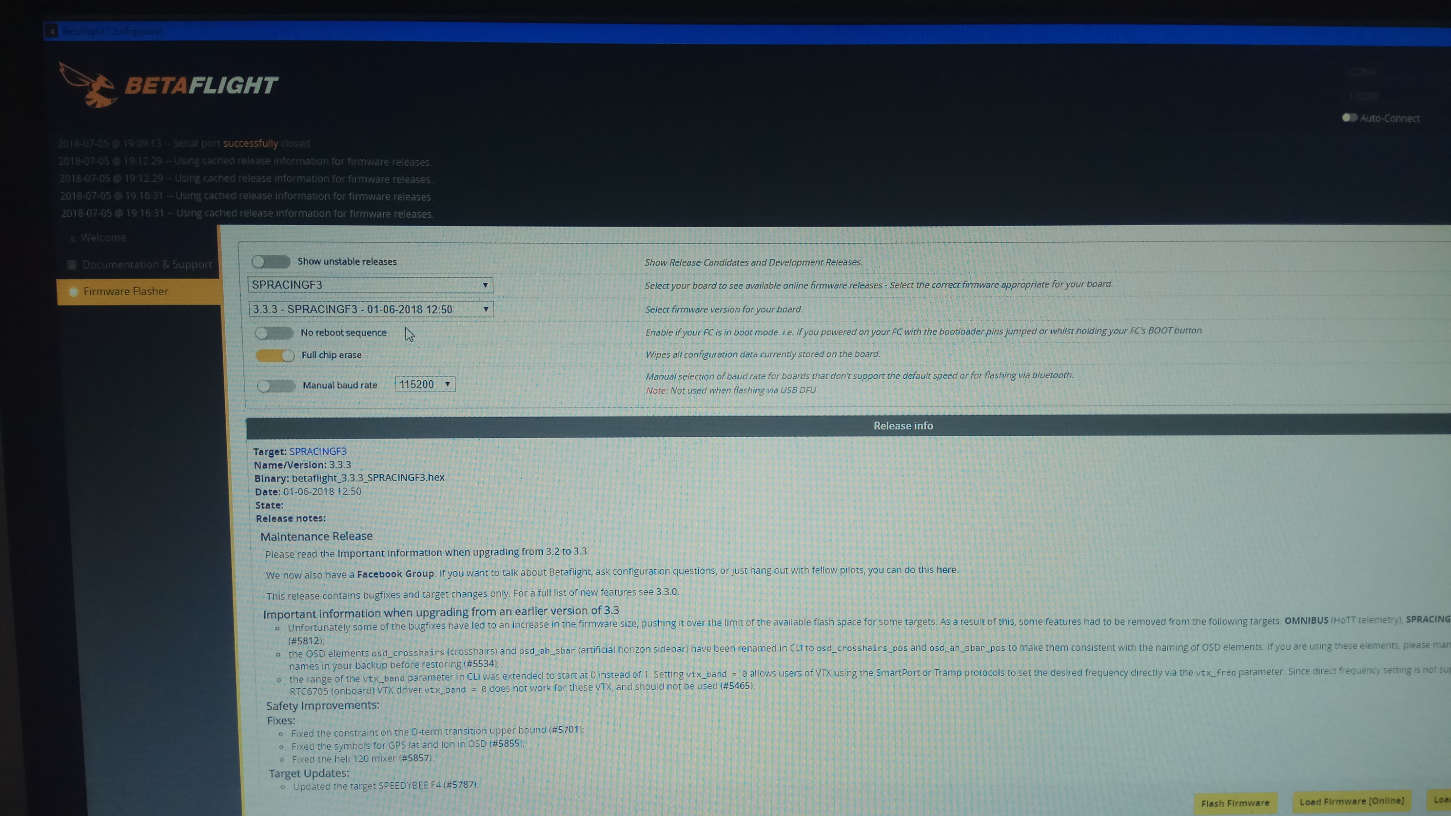 Enter bootmode, trying full chip erase, load and flash, full chip and no reboot load and flash, full chip no reboot and manual baud load and flash and not working. trying again.