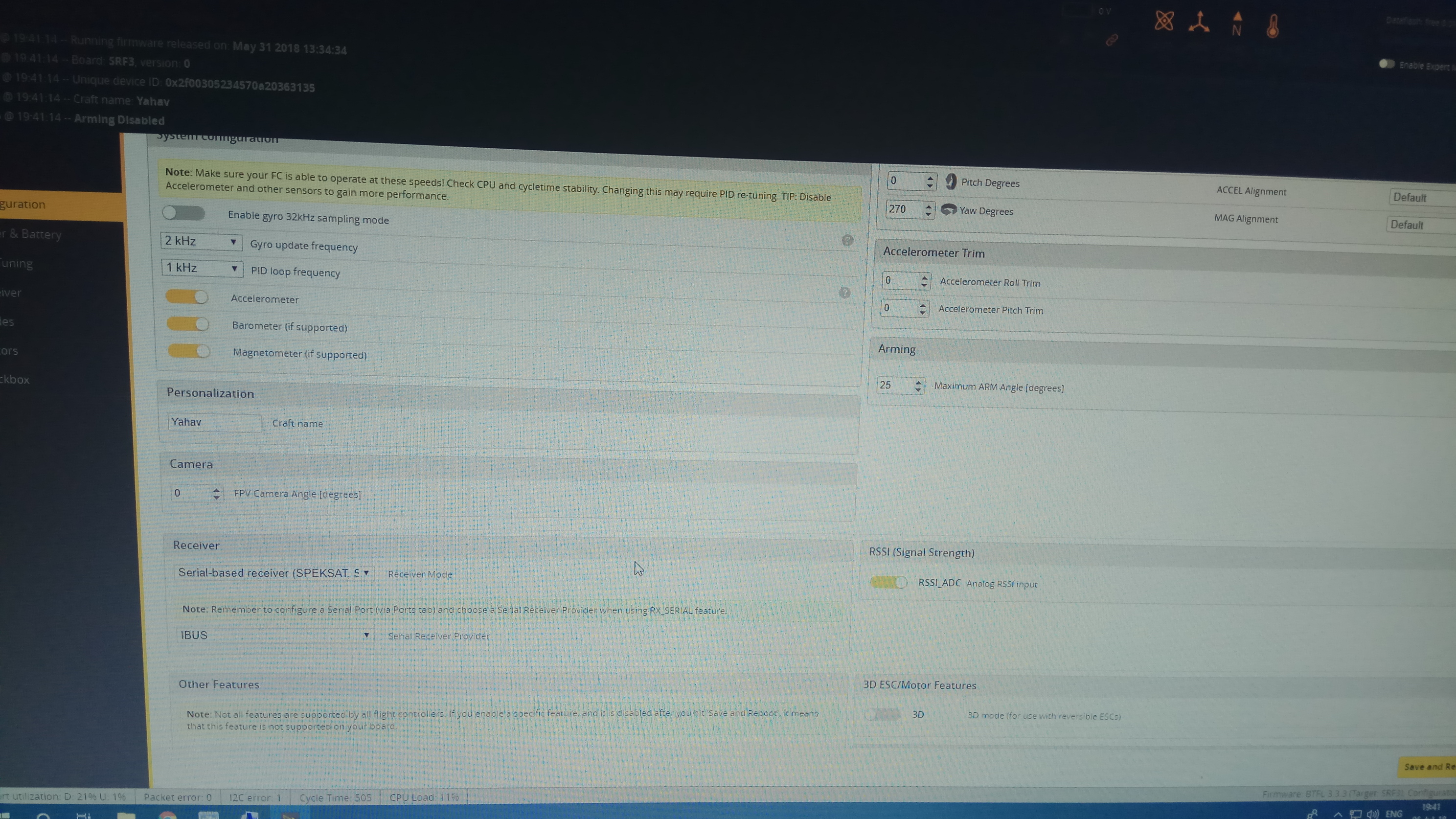 Unfortunately I have watched stu’s video of this build and you sir have the wrong reciever. Your build is fine no changes should done anywhere else but you need to go and buy a reciever that outputs sbus. You have flysky ia6 which only outputs ppm instead of sbus. In Stu’s videos he is using flysky ia6b which has an sbus output. Therefore I recommend getting flysky ia6c reciever than the ia6b because its more compact. In todays standard ppm output is pretty much outdated. These ia6c recievers are pretty cheap i think so if you can get you hands on it, its just a case of pluging the cable from your uart2 to the sbus pins. Sorry it took too long for me to figure out what was wrong with your set up(I had to go back and look at the past pic that you sent me). I apologise.