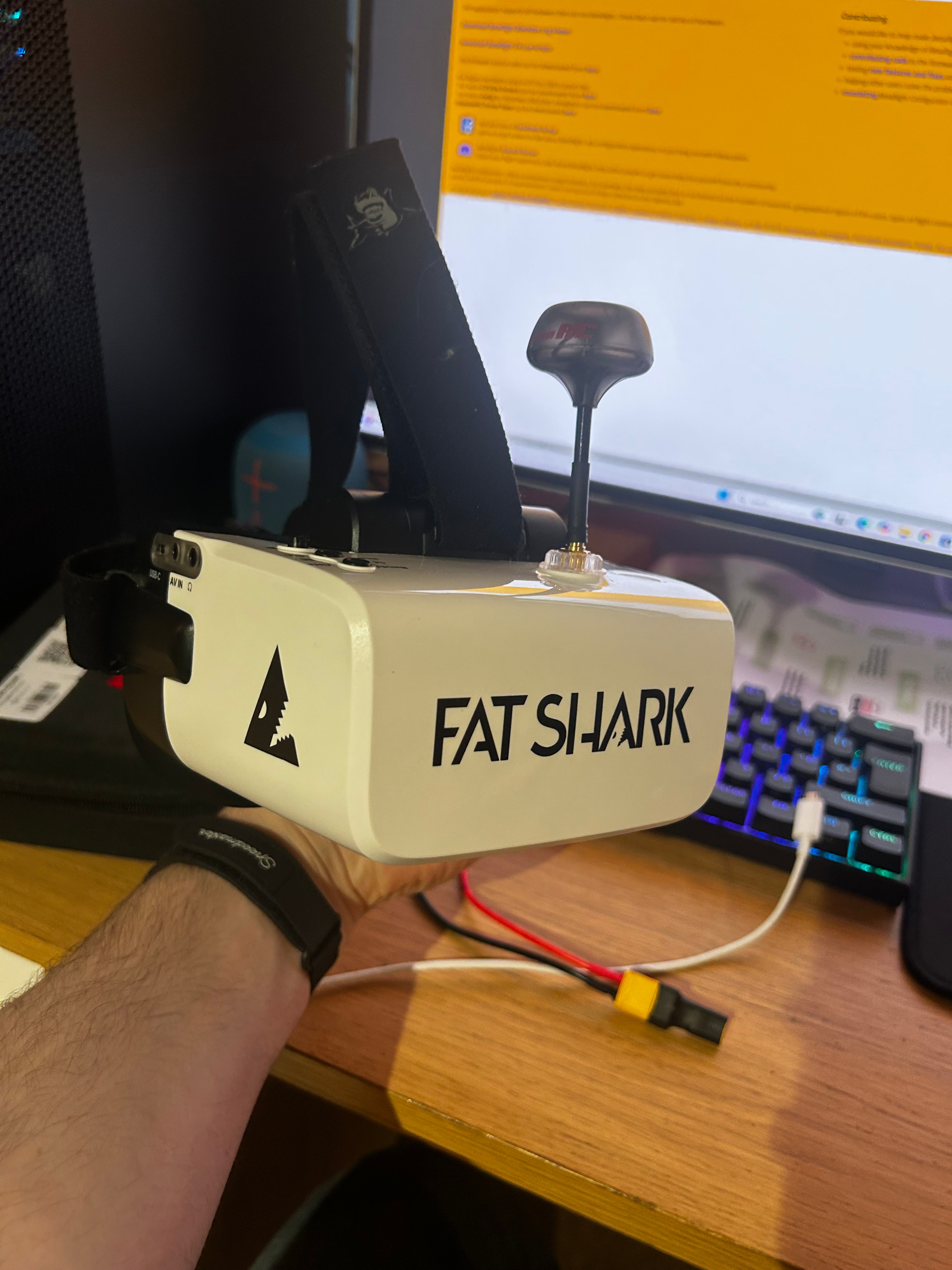 For my battery, i am using the Tattu R-line 4s 450mAh 90c batteries. And for my goggles i’m using the Fatshark scouts.