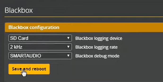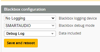 - Blackbox tab → set Debug Mode to SmartAudio → Save & Reboot