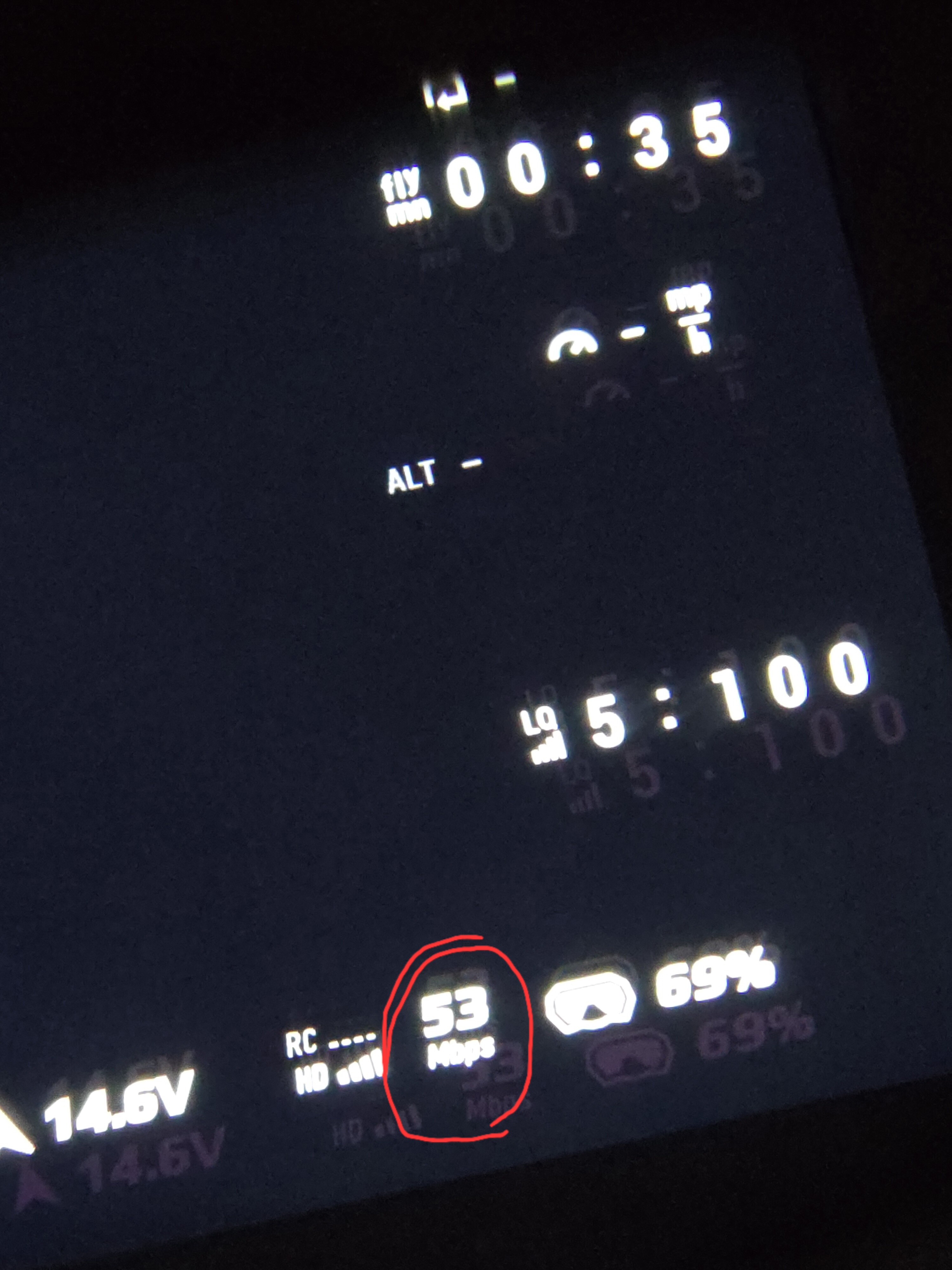 The bitrate you’re seeing (and roughly what distance/altitude when it drops)