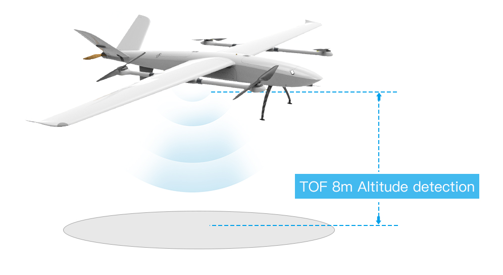 Due to its anti-water design on the fuselage and air speedometer, the Sky Whale Mini VTOL drone is weatherproof and can reach an IP55 rating. In this case, the waterproof VTOL aircraft can carry out urgent missions on rainy days, like search and rescue.