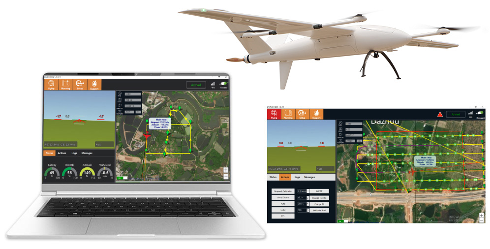 The LAUNCH ground control software that Sky Whale VTOL drone uses is developed for beginners, so a pilot without any flight experience can fly the drone well. Click HERE to learn more.
